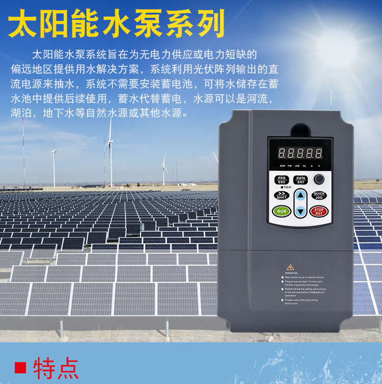 應(yīng)用行業(yè):廣泛應(yīng)用于陽(yáng)光充足、市電短缺的地區(qū),可以解決農(nóng)場(chǎng)灌溉、畜牧養(yǎng)殖、生產(chǎn)生活的用水問(wèn)題。